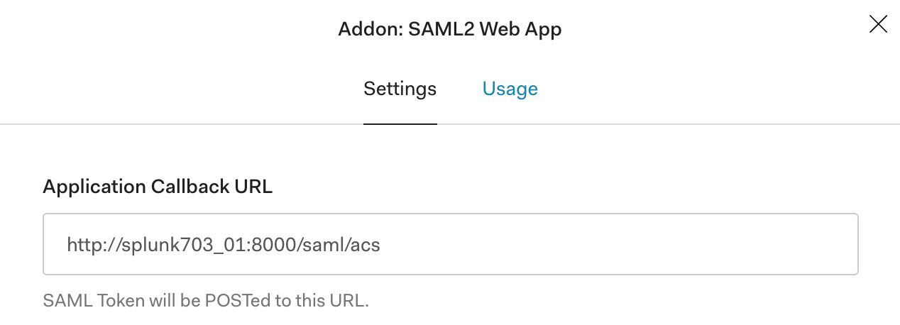 - In the “Application Callback URL” field, paste in the Assertion Consumer Service URL that can be found in the Splunk SP Metadata XML file that you’ve downloaded from Splunk UI in the previous section. It will be the value of