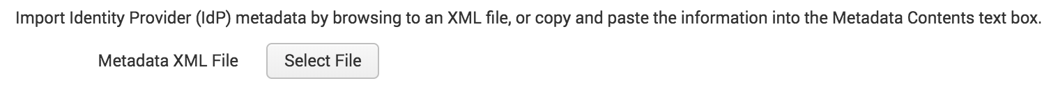 - On the right of the “Metadata XML File” click “Select File” and upload the IdP metadata file that you’ve downloaded from Auth, it will be called something like dev-1a2b3c4d-idp_au_auth0_com-metadata.xml (the first part will depend on your Auth0 tenant name).