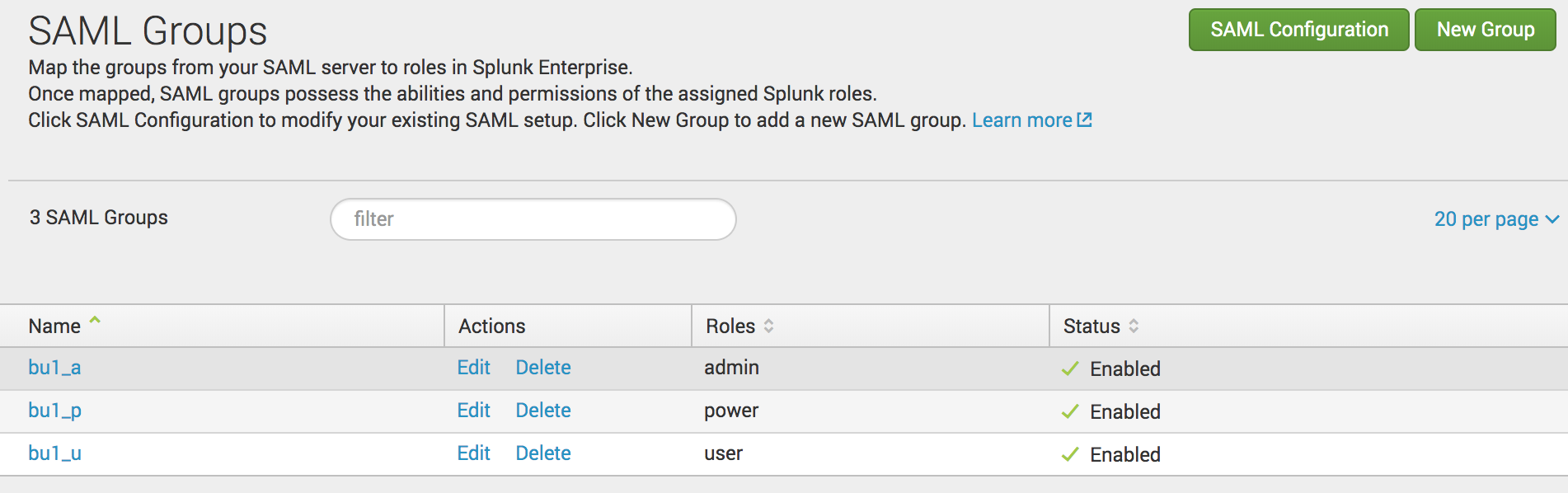 - Create the required SAML groups (and assign roles to them), so that these group names will be matched with the Auth0 role names