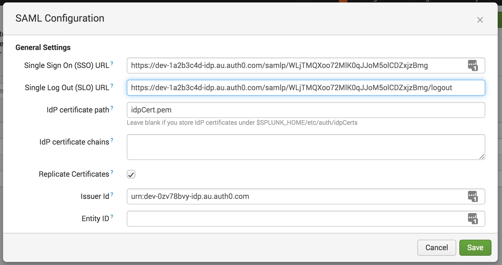 This tutorial is based on SAML SSO with Auth0 as Service Provider and as an Identity Provider, but the steps that are relevant to configuring an Auth0 tenant as the Service Provider (SP) are replaced with Splunk Configuration.