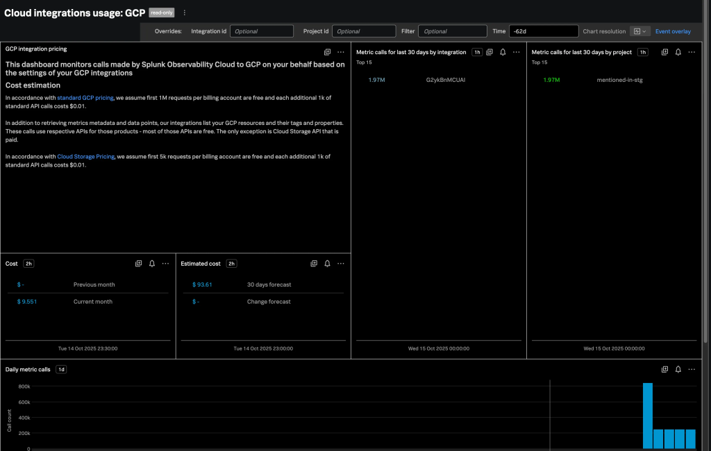 Remember that I told you that Splunk O11y will pull ALL the metrics from GCP Monitoring API?! It definitely will! If in the wizard, you are too lazy to pick and choose specific services and just ask for “the lot”, you might end up pulling and PAYING too much.